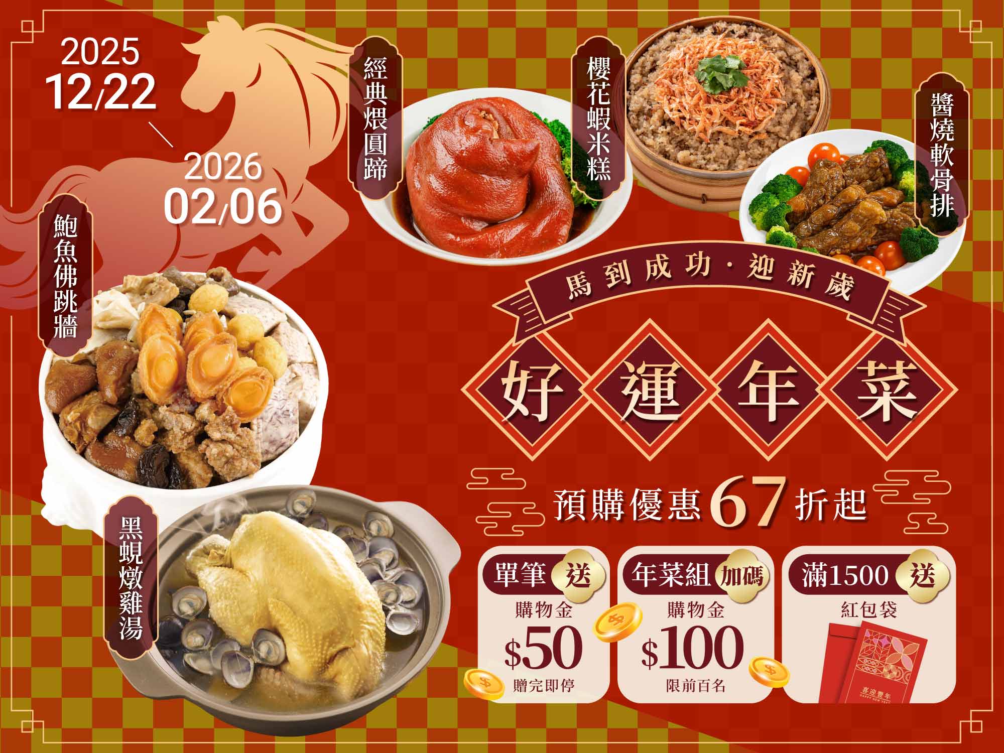2025/12/22-2026/2/6好運年菜預購優惠67折起
