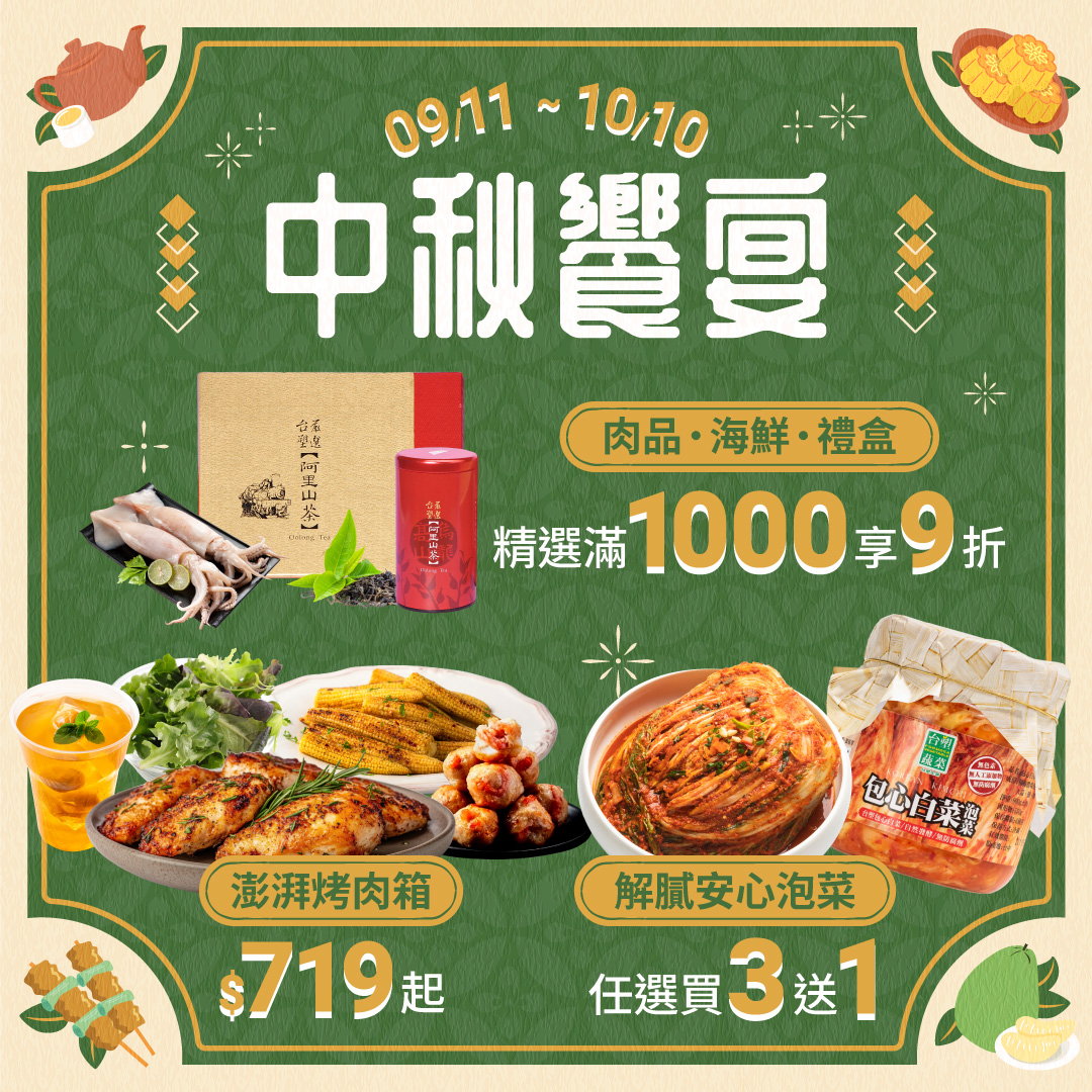 • 1. 指定肉品、海鮮禮盒:滿千9折